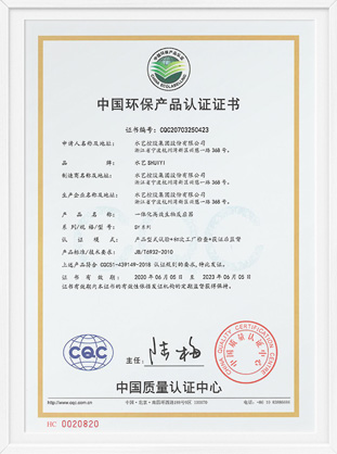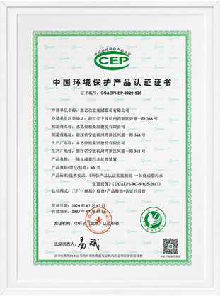 中國環境保護産品認證證書-一體化成套污水處理裝置