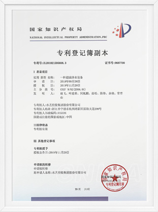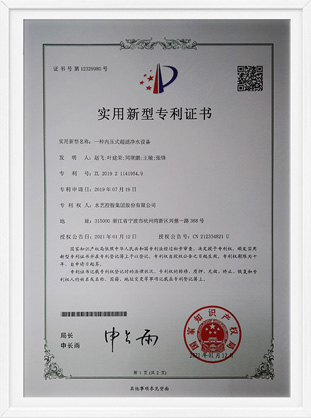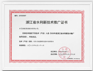 浙江省水利新技術推廣證書-内壓式超濾膜過濾水處理技術