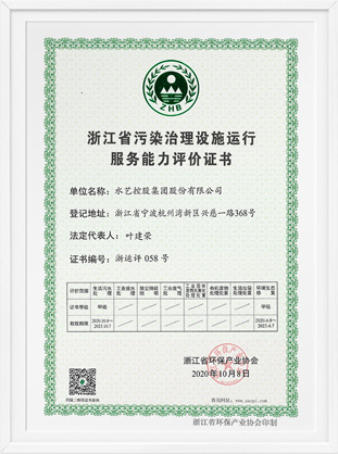 污染治理設施運行服務能力評價證書