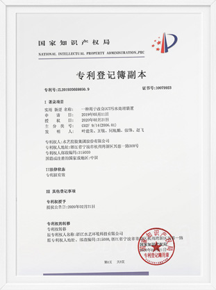 甯波市環境保護産業骨幹企業證書